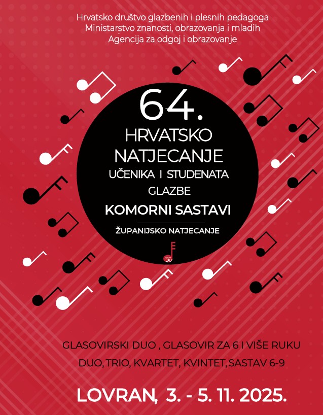 Na 64. hrvatskom natjecanju učenika i studenata glazbe – KOMORNI SASTAVI, ŽUPANIJSKO NATJECANJE, održanom u Lovranu od 3. – 5. studenog 2025. nastupili su naši učenici.